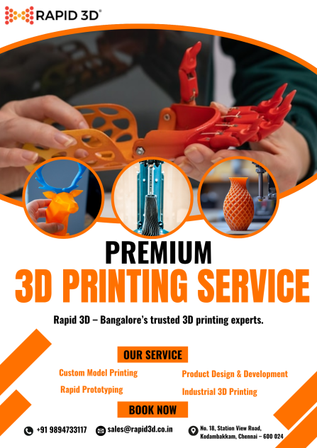 Rapid 3D, one of the leading 3D printing companies in Bangalore, provides customized solutions using advanced additive manufacturing technology. Their services include rapid prototyping, industrial 3D printing, and product development, ensuring accuracy and high-quality results for every project.